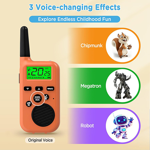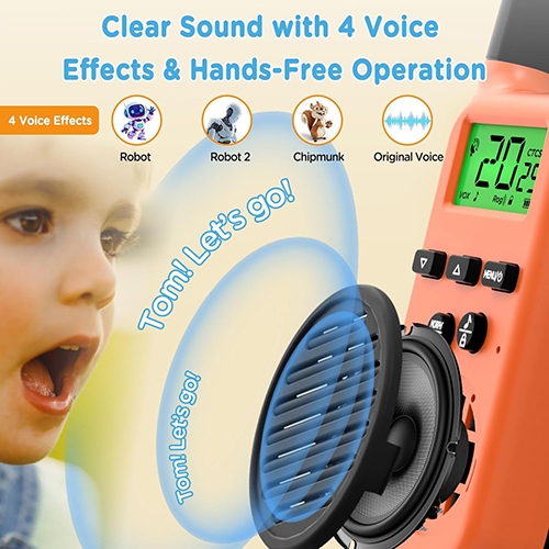 𝗖𝗹𝗲𝗮𝗿 𝗦𝗼𝘂𝗻𝗱 & 𝗩𝗼𝗶𝗰𝗲 𝗘𝗳𝗳𝗲𝗰𝘁𝘀: With crisp, clear audio and 8 volume settings, Peakeep two way radios make sure every message is heard. But wait - there’s more! Kids can giggle and play with three cool voice effects: Robot, Megatron, and Chipmunk! Whether they’re telling secrets or creating stories, every conversation becomes an adventure.