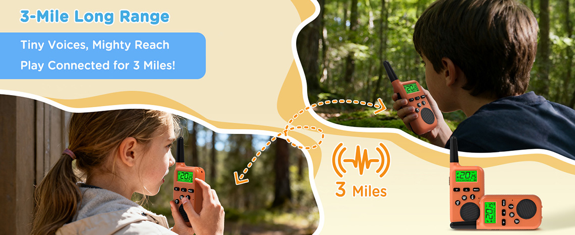 𝟯 𝗠𝗶𝗹𝗲𝘀 𝗟𝗼𝗻𝗴 𝗥𝗮𝗻𝗴𝗲 & 𝗘𝗮𝘀𝘆 𝘁𝗼 𝗨𝘀𝗲: Let your little explorers roam with confidence! Peakeep long range walkie talkies for kids keep them connected over impressive distances - up to 3 miles in open areas. Simple one-button operation means even young kids 3 years can chat easily. Ideal for camping, hiking, or backyard adventures, they’re designed to make every outing more fun and interactive.