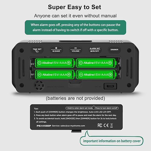𝗔𝗹𝗮𝗿𝗺 𝗖𝗹𝗼𝗰𝗸 𝘄𝗶𝘁𝗵 𝟭𝟮/𝟮𝟰-𝗛𝗼𝘂𝗿 𝗙𝗼𝗿𝗺𝗮𝘁 𝗢𝗽𝘁𝗶𝗼𝗻: Tailor your time display to suit your style—seamlessly switch between 12-hour (regular time) and 24-hour (military time) formats. Whether you prefer a classic desk clock look or modern digital alarm clock clarity, Peakeep portable alarm clock keeps you punctual and in control.