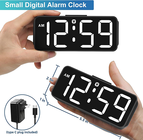 𝐒𝐦𝐚𝐥𝐥 𝐃𝐢𝐠𝐢𝐭𝐚𝐥 𝐀𝐥𝐚𝐫𝐦 𝐂𝐥𝐨𝐜𝐤: Considering about practicality, durability and aesthetics, Peakeep, as a leading brand of alarm clocks, designed this LED clock with compact size of 5 1/2 (W) x 2 1/2 (H) inch. This small digital clock for bedroom doesn't take up much space and very easy to carry, making it a great choice as a travel digital alarm clock,desktop clock, nightstand clock and table clock.