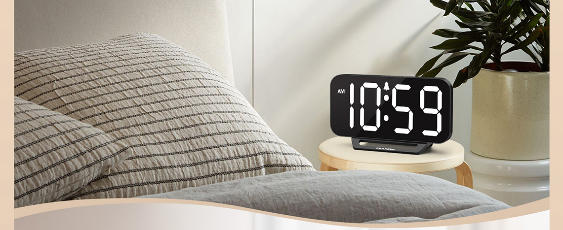 𝐒𝐦𝐚𝐥𝐥 𝐃𝐢𝐠𝐢𝐭𝐚𝐥 𝐂𝐥𝐨𝐜𝐤𝐬 𝐟𝐨𝐫 𝐇𝐨𝐦𝐞 𝐃𝐞𝐬𝐤 𝐁𝐞𝐝𝐫𝐨𝐨𝐦: Peakeep alarm clocks boast a slim streamlined look, complementing any home office décor or bedroom desk accessories. The minimalist aesthetic desktop stand makes the clock remains stable and prominently visible at all times, not only adding a touch of elegance but also ensuring time is legible from a variety of angles.
