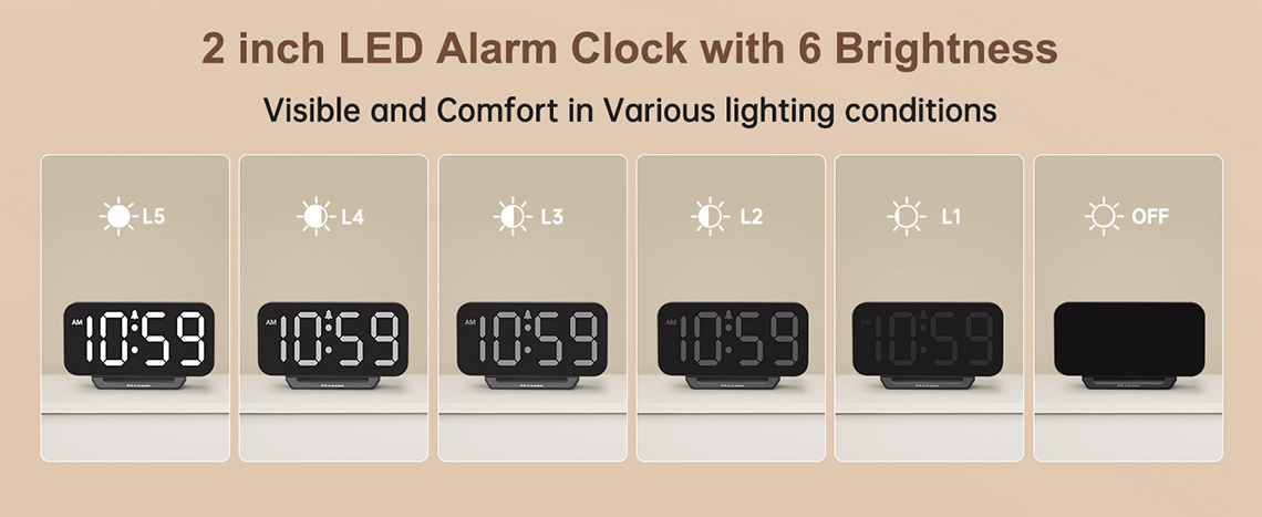𝟔 𝐃𝐢𝐦𝐦𝐞𝐫𝐬 𝐋𝐚𝐫𝐠𝐞 𝐍𝐮𝐦𝐛𝐞𝐫 𝐃𝐢𝐠𝐢𝐭𝐚𝐥 𝐂𝐥𝐨𝐜𝐤: 6 adjustable levels of brightness ensure we can check time easily cross the room day and night while protecting our eyesight as well as no-interfere with sleep.