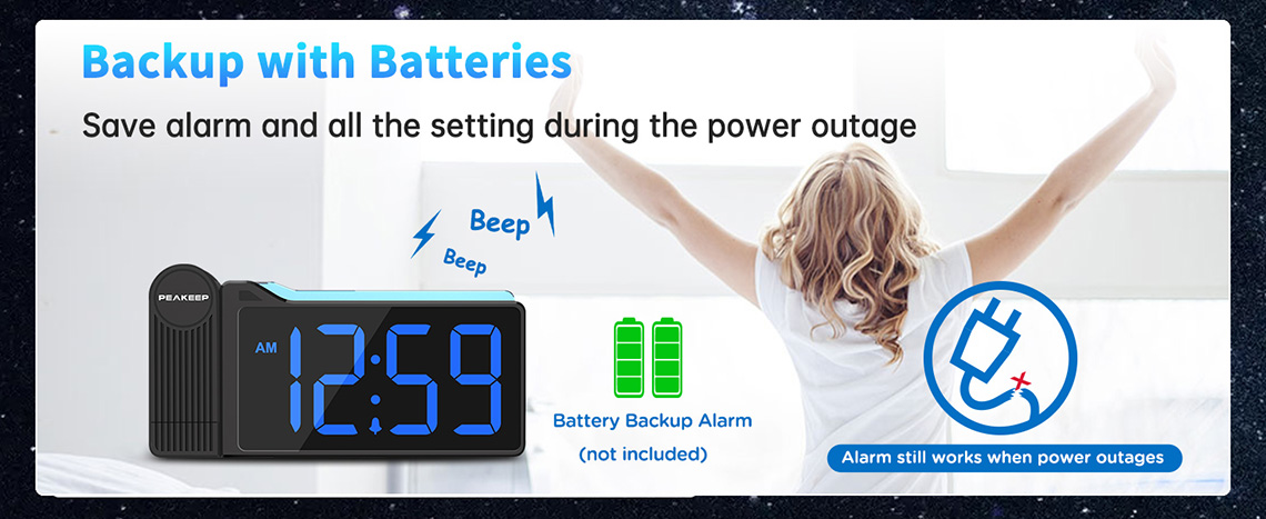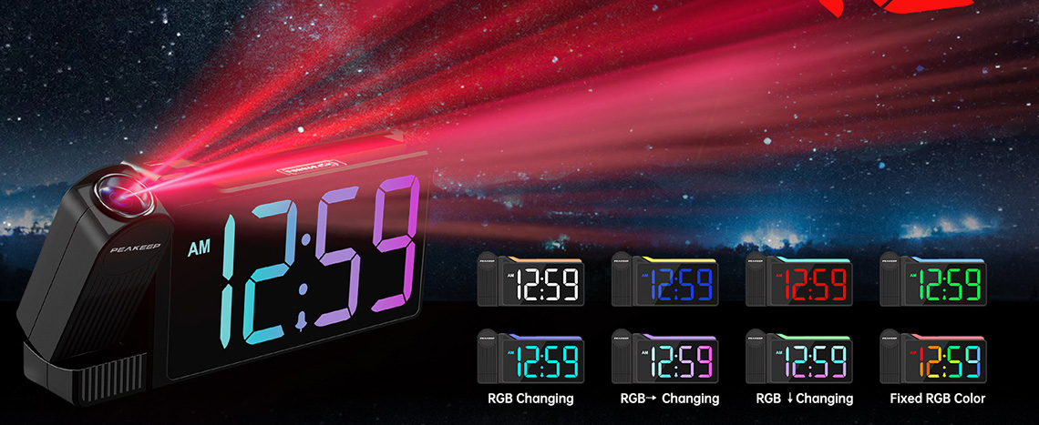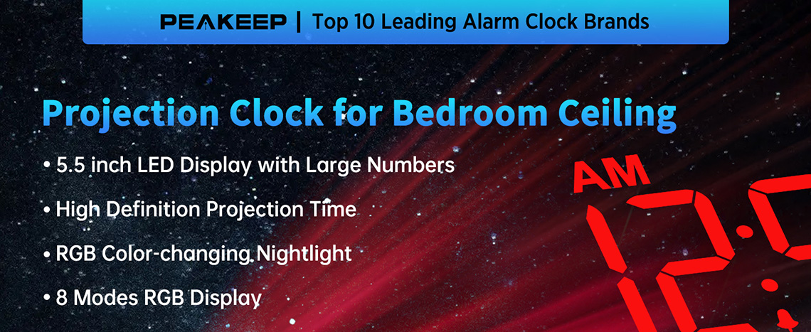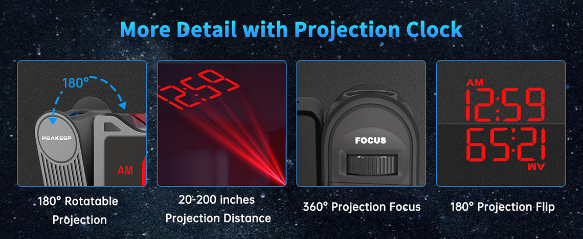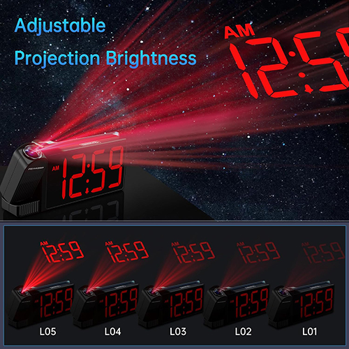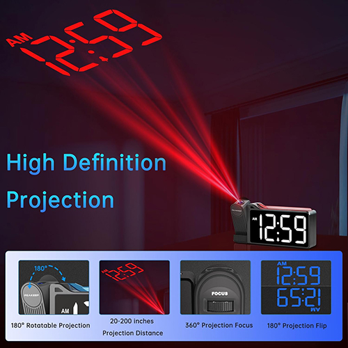 𝟏𝟖𝟎 𝐝𝐞𝐠𝐫𝐞𝐞 𝐑𝐨𝐭𝐚𝐭𝐚𝐛𝐥𝐞 𝐏𝐫𝐨𝐣𝐞𝐜𝐭𝐢𝐨𝐧 𝐀𝐥𝐚𝐫𝐦 𝐂𝐥𝐨𝐜𝐤 𝐟𝐨𝐫 𝐁𝐞𝐝𝐫𝐨𝐨𝐦 𝐂𝐞𝐢𝐥𝐢𝐧𝐠 - This modern projection alarm clock rotates 180 degrees, projects distance from 20 inches to 200 inches, and has 5 projection brightness levels to choose from. Think How pleasant it would be to be in bed in the dark of the night and just look up to see the time.