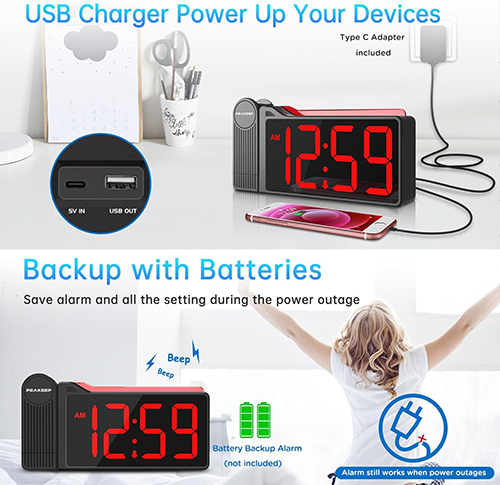 Special Feature : Swivel HD Projection, 5 Brightness, Colorful Nightlight, 2.2 Inch Big Numbers Display, Loud Alarm and Volume Adjustable, Plug Included, Battery Backup, USB ChargerSwivel HD Projection, 5 Brightness, Colorful Nightlight, 2.2 Inch Big Numbers Display, Loud Alarm and Volume Adjustable, Plug Included, Battery Backup, USB Charger