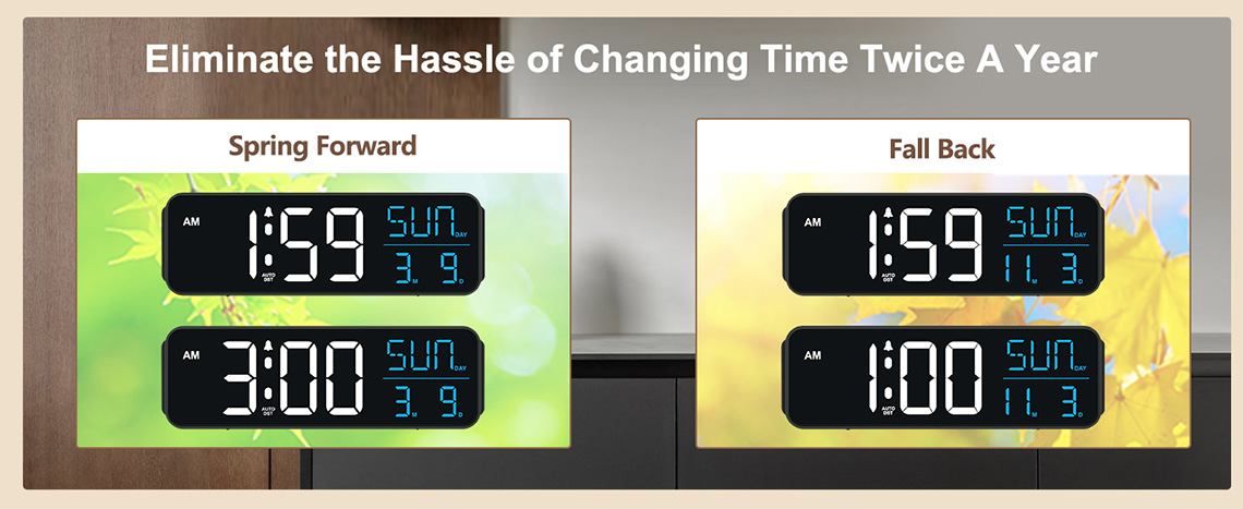𝐃𝐢𝐠𝐢𝐭𝐚𝐥 𝐀𝐥𝐚𝐫𝐦 𝐂𝐥𝐨𝐜𝐤 𝐰𝐢𝐭𝐡 𝐀𝐮𝐭𝐨 𝐃𝐒𝐓:Imagine never having to manually adjust your clock for Daylight Saving Time again. With auto DST, your digital alarm clock seamlessly transitions between standard and Daylight Savings Time, ensuring you're always in sync with the official time change.