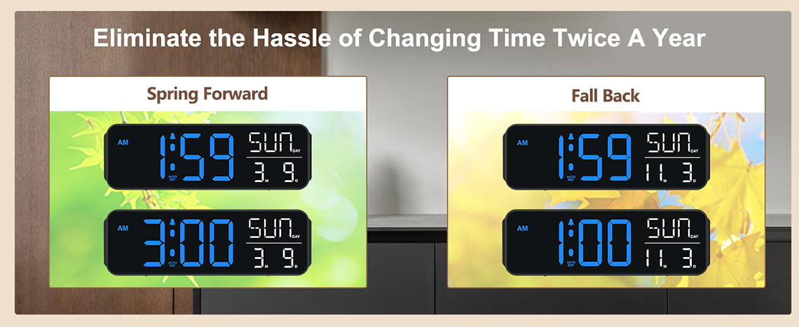 𝐃𝐢𝐠𝐢𝐭𝐚𝐥 𝐀𝐥𝐚𝐫𝐦 𝐂𝐥𝐨𝐜𝐤 𝐰𝐢𝐭𝐡 𝐀𝐮𝐭𝐨 𝐃𝐒𝐓:Imagine never having to manually adjust your clock for Daylight Saving Time again. With auto DST, your digital alarm clock seamlessly transitions between standard and Daylight Savings Time, ensuring you're always in sync with the official time change.