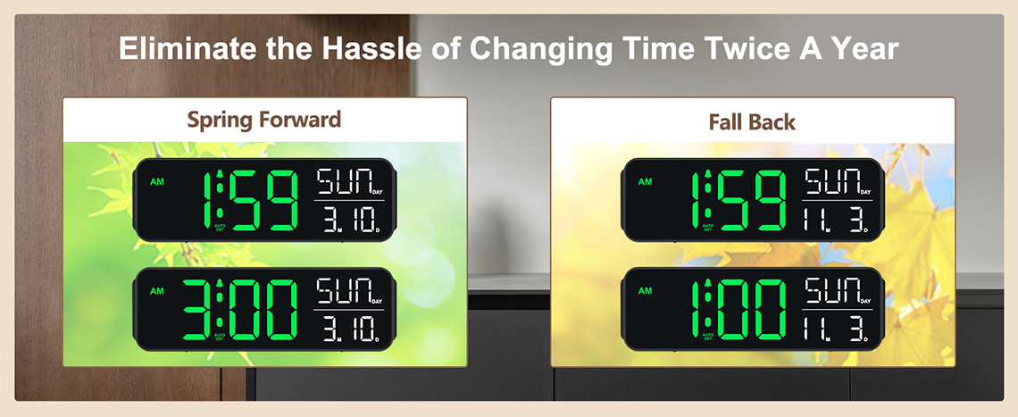 𝐃𝐢𝐠𝐢𝐭𝐚𝐥 𝐀𝐥𝐚𝐫𝐦 𝐂𝐥𝐨𝐜𝐤 𝐰𝐢𝐭𝐡 𝐀𝐮𝐭𝐨 𝐃𝐒𝐓:Imagine never having to manually adjust your clock for Daylight Saving Time again. With auto DST, your digital alarm clock seamlessly transitions between standard and Daylight Savings Time, ensuring you're always in sync with the official time change.