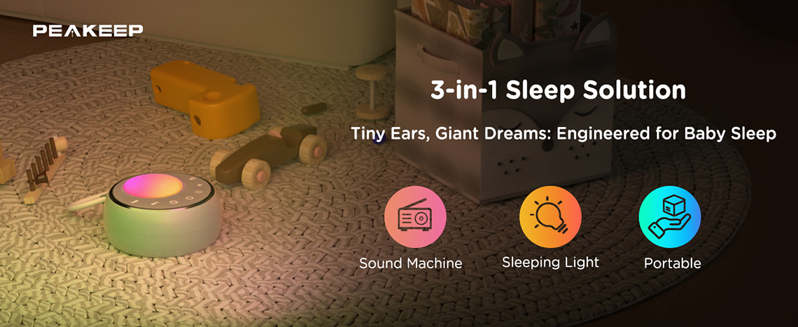 Peakeep Sound Machine with Sleeping Light for Baby, White Noise Lullaby Hush Heartbeat Fan 27 Sounds, 3 Dimmers Dimmable, Travel Battery Machine 30 Volume Loud, 25 Hours Continuous Audio (Aqua)
