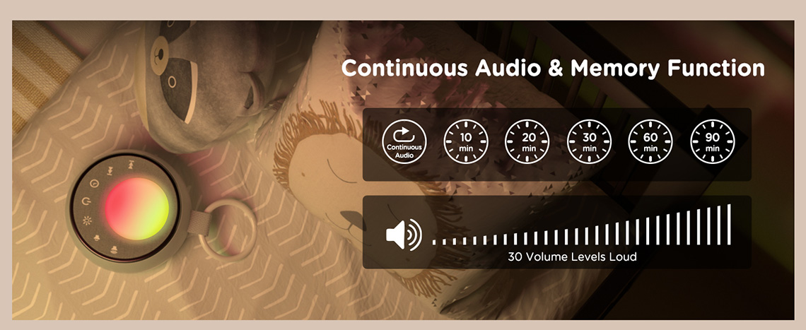 𝐌𝐞𝐦𝐨𝐫𝐲 𝐅𝐮𝐧𝐜𝐭𝐢𝐨𝐧: With Smart Memory Tech, Peakeep sound machine auto-saves your last settings-effortlessly resurrecting customized lullaby harmonies, precise white noise frequencies, and ambient glow with single-touch precision. Sleep-deprived parents instantly recapture nursery serenity; productivity warriors seamlessly rebuild office sound shields. No more fumbling—your signature soundscape stays ready.